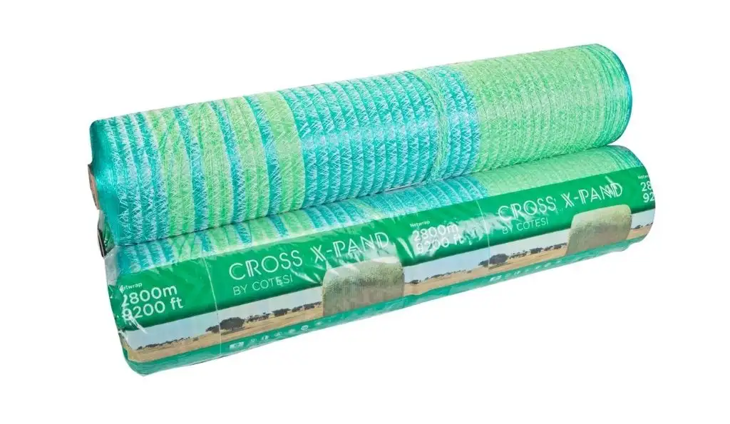 Nowa technologia budowy siatki markiCotesi”! Niesamowitą zaletą jest konstrukcja siatki Cross X-Pand, w stosunku do „standardowejkonstrukcji siatki rolniczej.