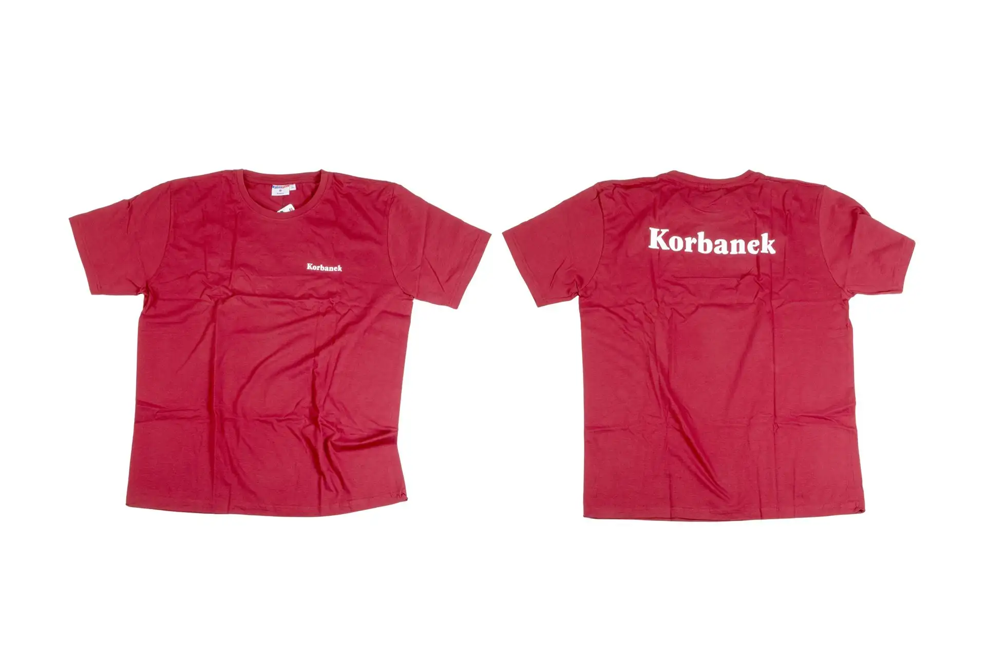 Pierwszym produktem z Live jest bordowa koszulka w rozmiarze XL sygnowana naszym firmowym logo „Korbanek”. Mały napis „Korbanek” znajduje się na lewej piersi, a duży napis „Korbanek” z tyłu na plecach. Napisy są w białym kolorze. Karolina na relacji live jest ubrana w rozmiar S i jak twierdzi, koszulka jest bardzo wygodna. Tylko teraz cena to 22,30 złotych.