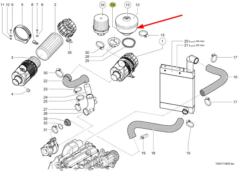 Oryginalna obudowa filtra wstępnego powietrza, stosowana w maszynach rolniczych marki Claas.
