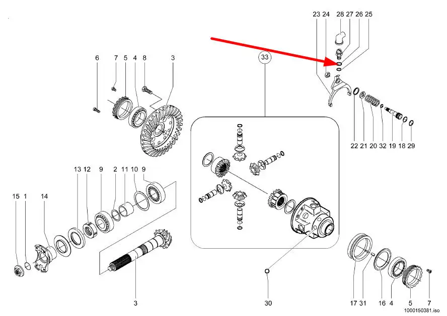 Oryginalna podkładka miedziana mechanizmu różnicowego przedniej osi o numerze katalogowym 0013011180, stosowana w ciągnikach rolniczych marki Fendt.