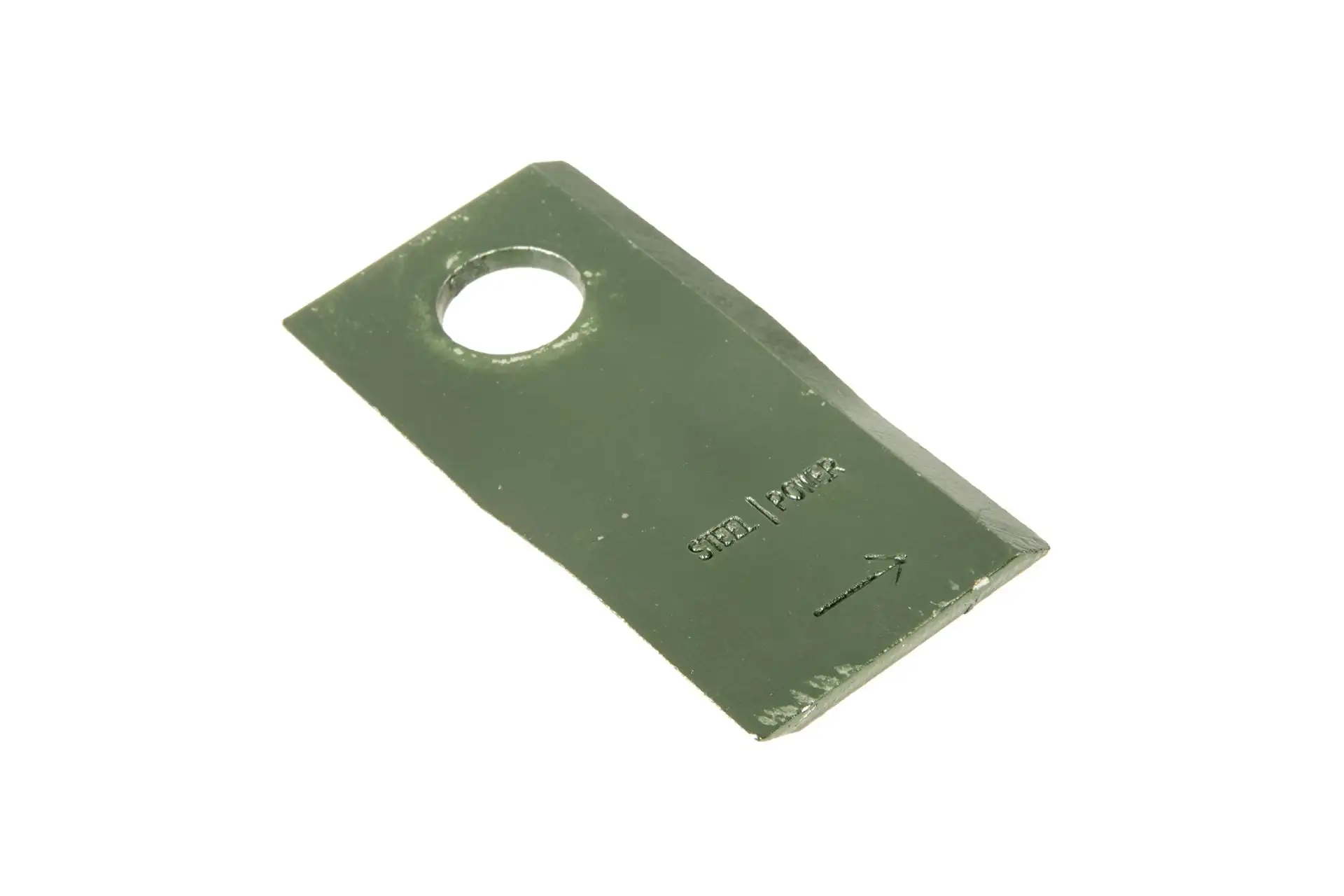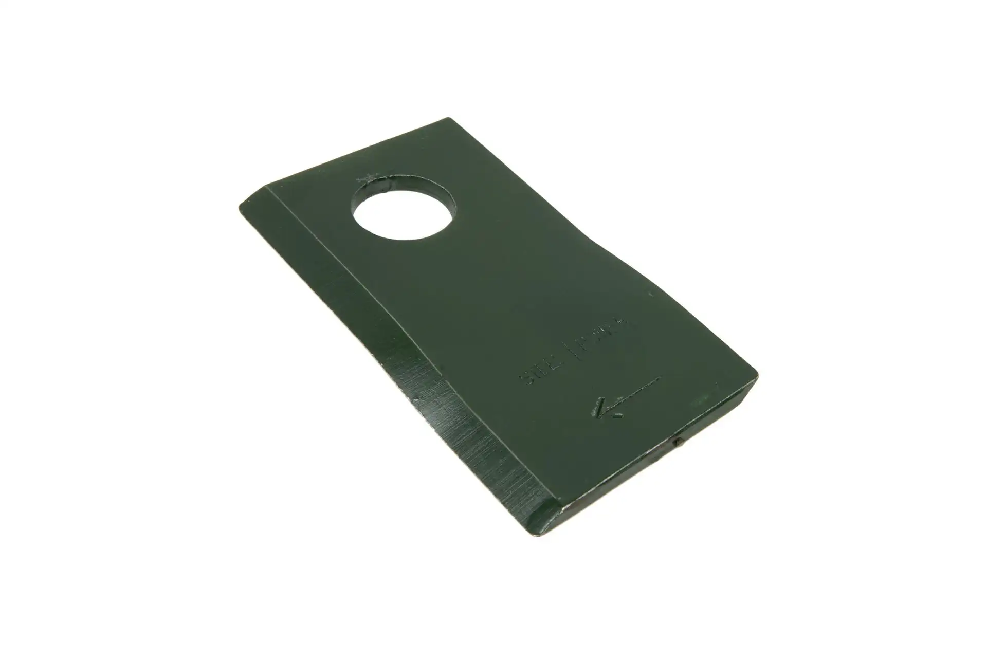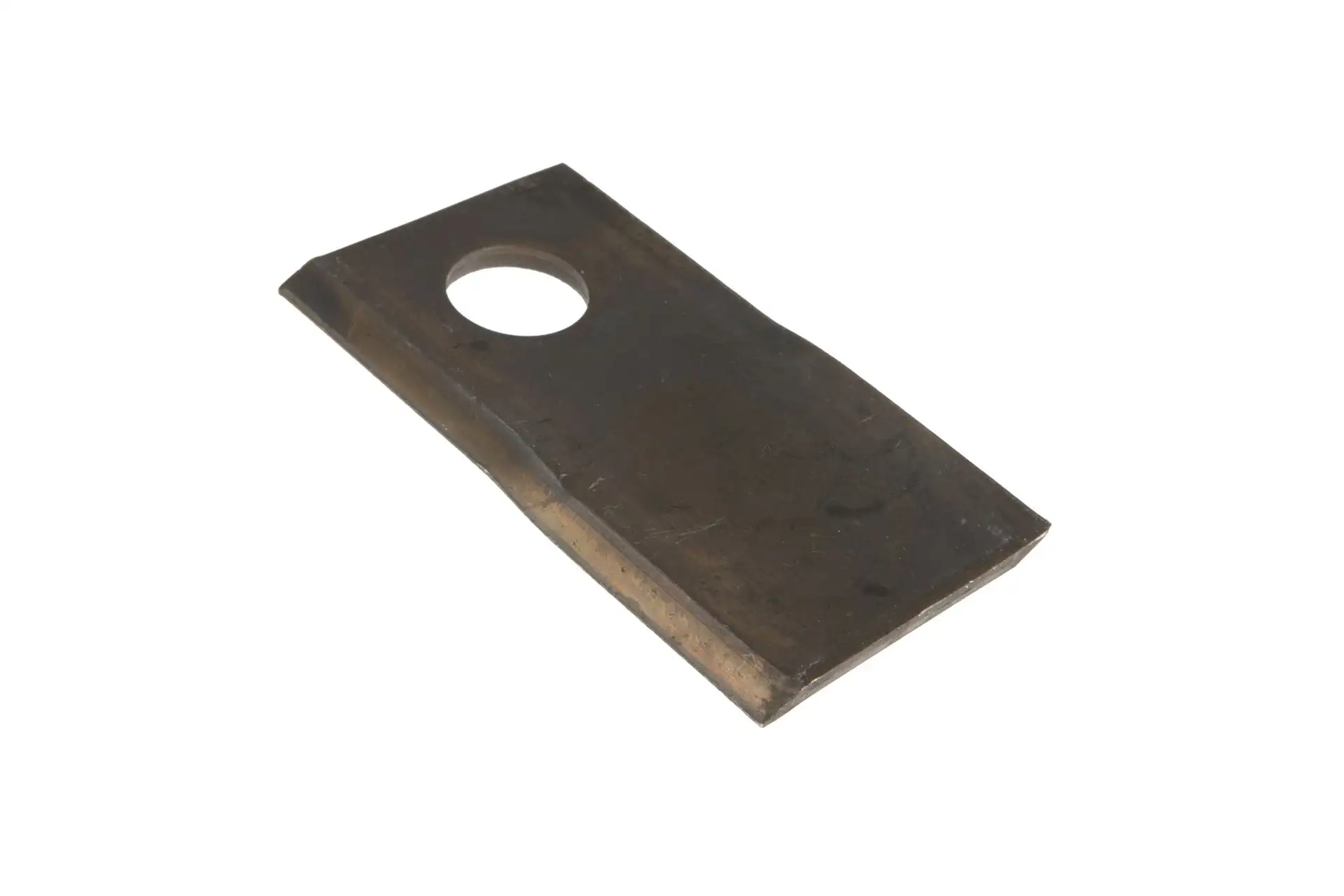 Nóż kosiarki prawy o wymiarach 98 x 48 x 4 mm, średnicy otworu fi 19 mm i numerze katalogowym 001466912KR, stosowany w kosiarkach marki Krone.