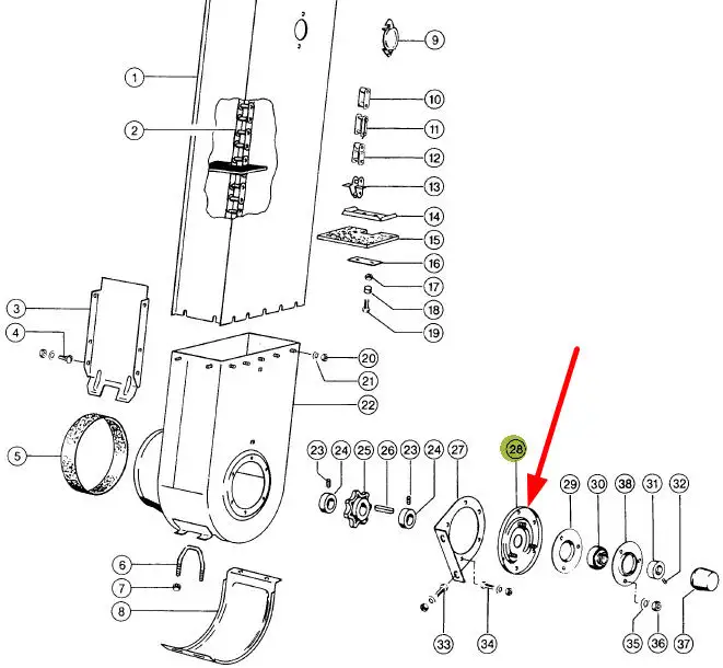 Oryginalna pokrywa przenośnika ziarna o numerze katalogowym 0023128201, stosowana w kombajnach zbożowych marki Claas.