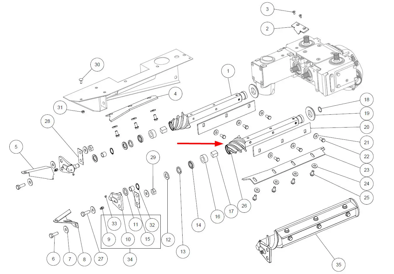 Oryginalny wałek lewy M2-80031 o numerze 01020102, stosowany w przystawkach do kukurydzy marki Capello.