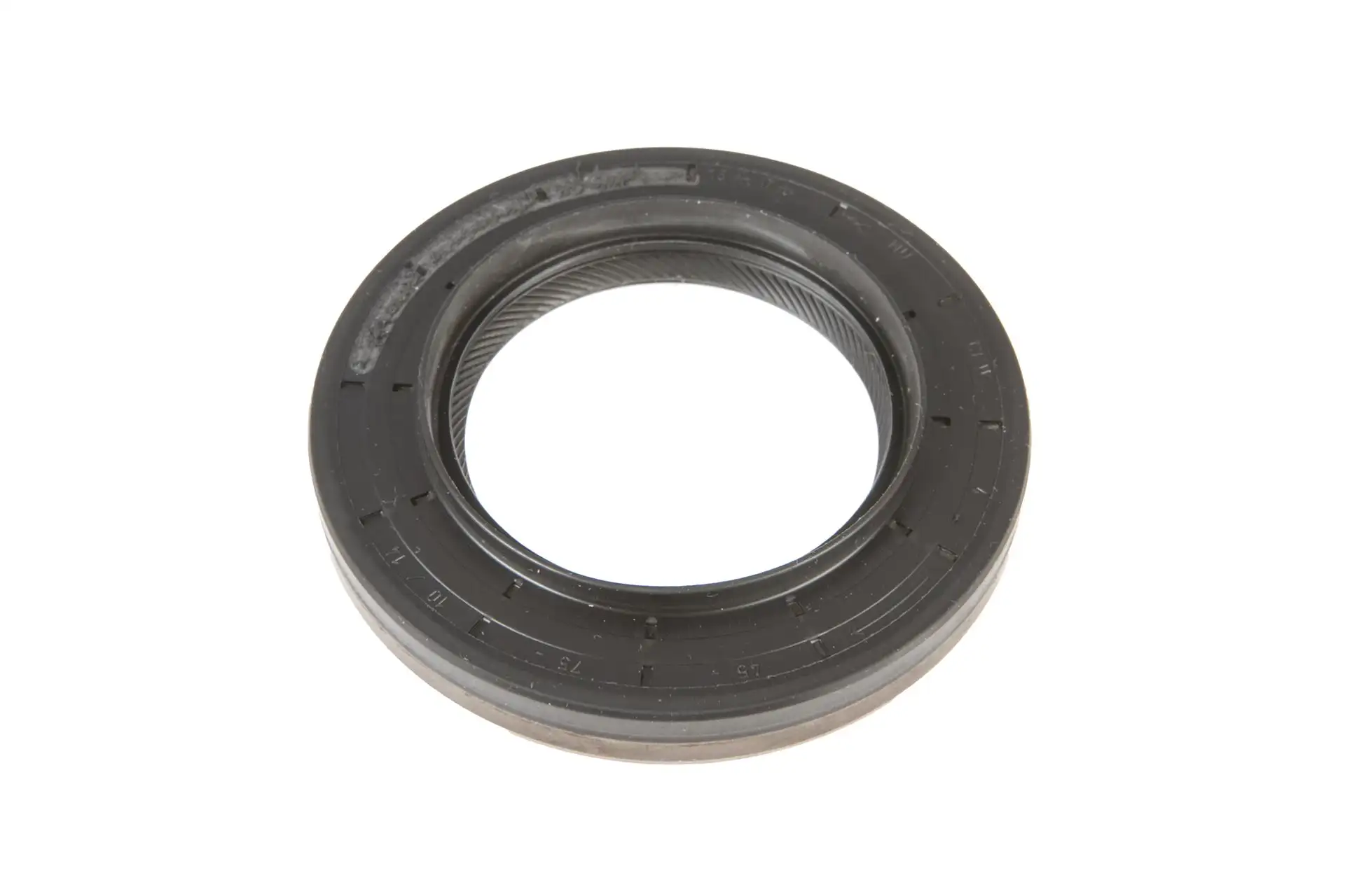 Pierścień simering o wymiarach 45mm x 75mm x 10/14mm z numerem katalogowym 01027755B, stosowany w pojazdach i maszynach rolniczych wielu marek.