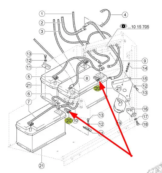 Oryginalny zacisk akumulatora o numerze katalogowym 010831.0, stosowany w ciągnikach rolniczych i kombajnach zbożowych marki Claas.