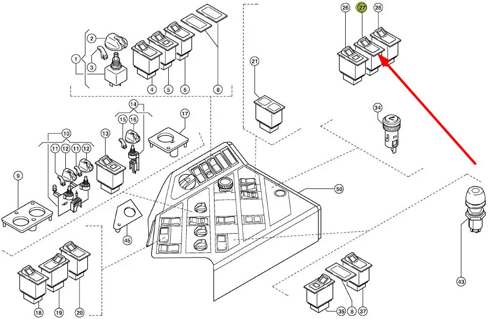 Oryginalny włącznik elektryczny o numerze katalogowym 012338.1, stosowany w sieczkarniach oraz kombajnach zbożowych marki Claas.