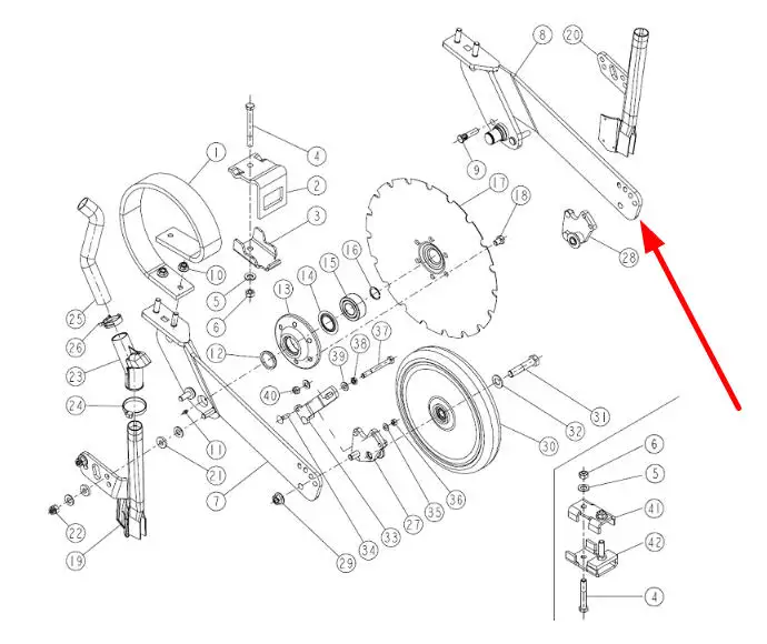 Oryginalny, prawy korpus redlicy siewnika o numerze katalogowym 014267, stosowany w siewnikach marki Sulky.