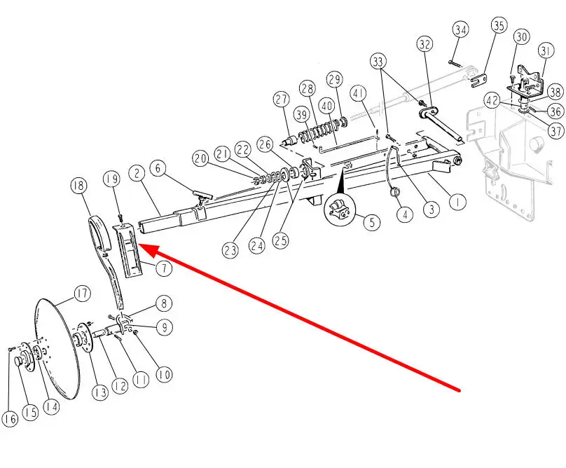 Oryginalne mocowanie redlicy wysiewającej o numerze katalogowym 016049, stosowane w siewnikach i agregatach marki Sulky.