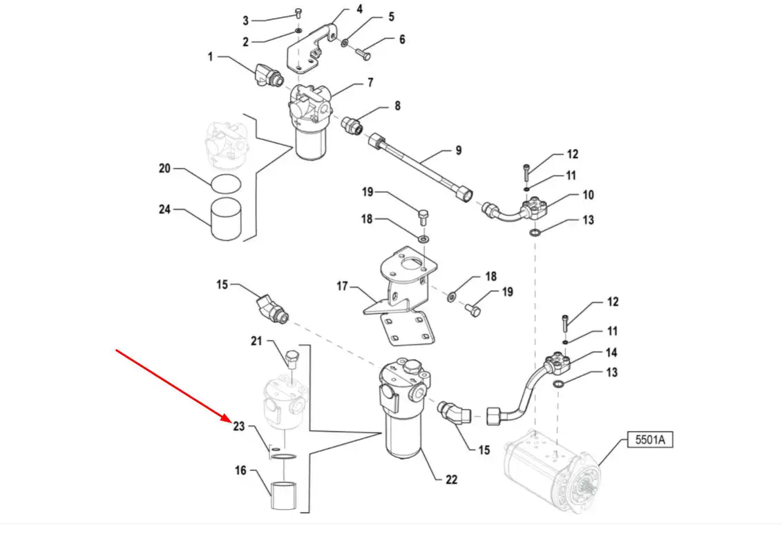 Oryginalny zestaw pierścieni filtra hydrauliki o numerze katalogowym 02060109, stosowany w ciagnikach rolniczych marki Arbos.