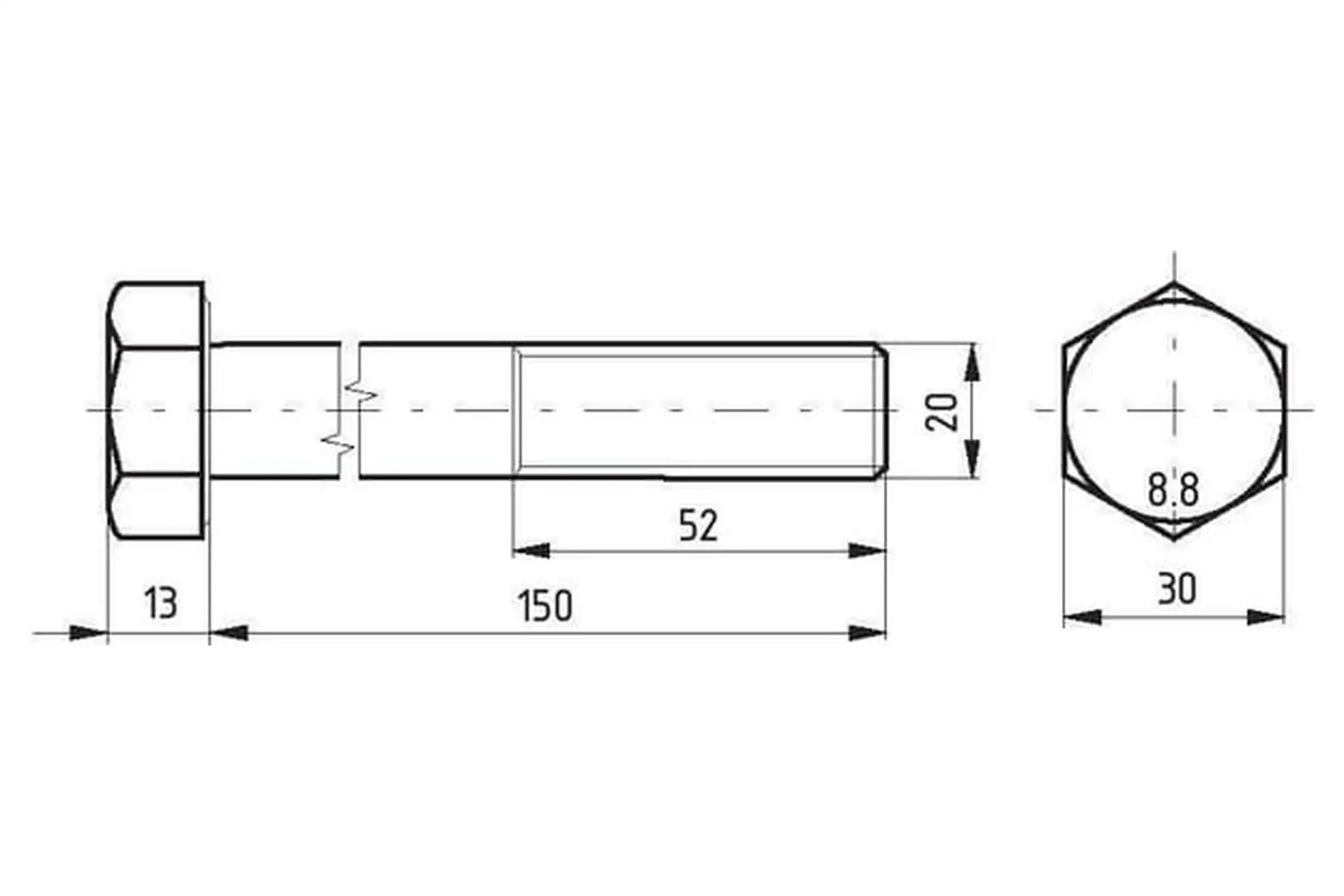 Śruba pół gwint kl. 8.8 ocynk, 20 x 150