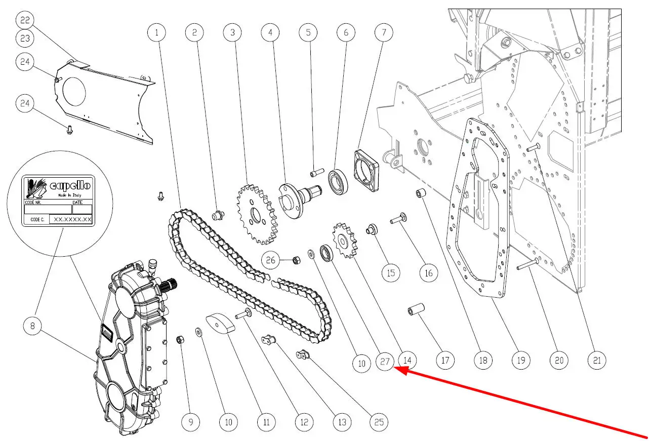 Oryginalne łożysko napędu przedkładni o numerze katalogowym 02254000, stosowane w przystawkach do kukurydzy marki Capello.