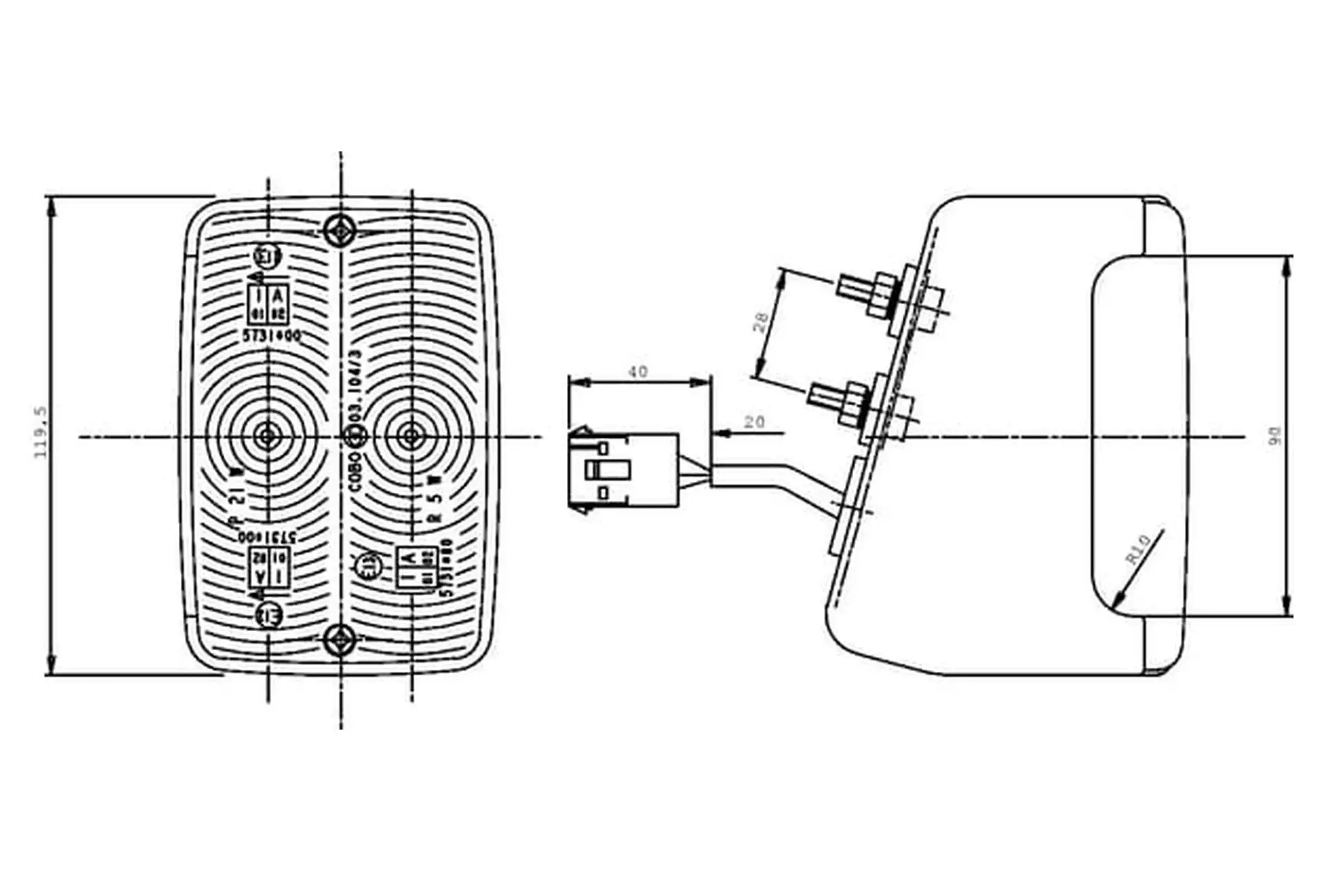 Lampa zespolona kierunkowskazu i postoju, prawa 12V Cobo 03393000