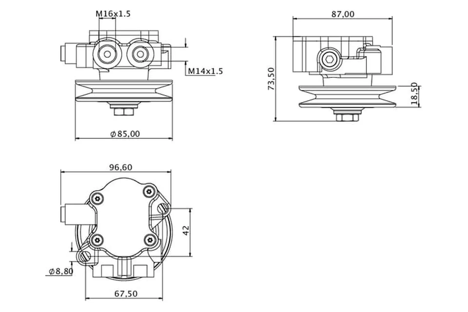 • Przyłącza po stronie tłocznej: M16 x 1,5