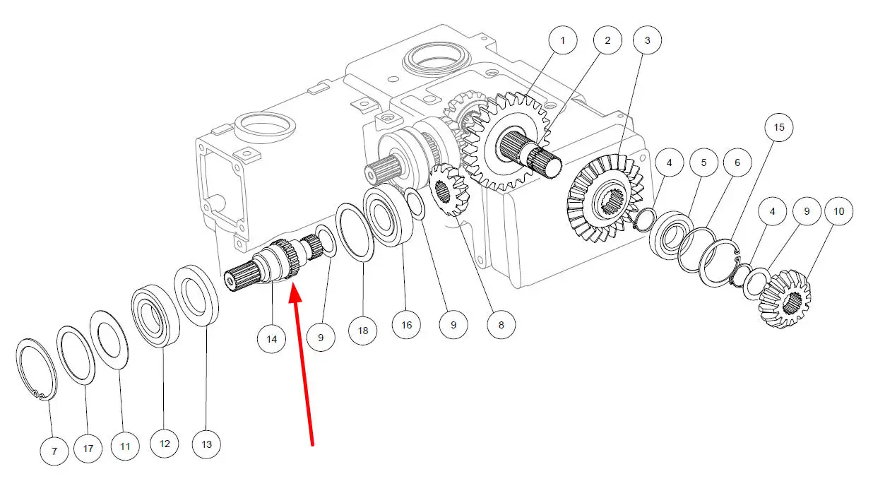 Oryginalny wałek przekładni kątowej o numerze katalogowym 04502500, stosowany w adapterach do kukurydzy marki Capello.