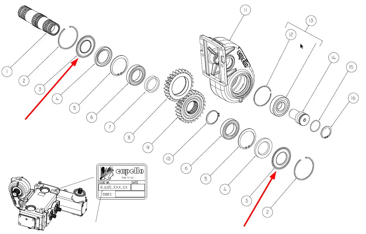 Oryginalny pierścień zabezpieczający, stosowany w przystawkach do kukurydzy marki Capello.
