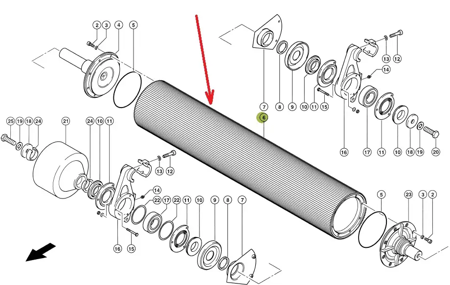 Oryginalny walec gniotownika o wymiarach 196 x 638 mm i numerze katalogowym 067864.0, stosowany w sieczkarniach samojezdnych marki Claas.