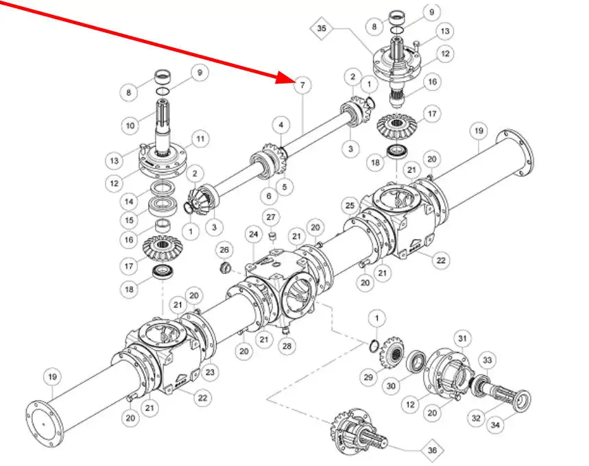 Oryginalny wał zdawczy o długości 35 cm o numerze katalogowym 0829300112035, stosowany w maszynach rolniczych marki Unia.