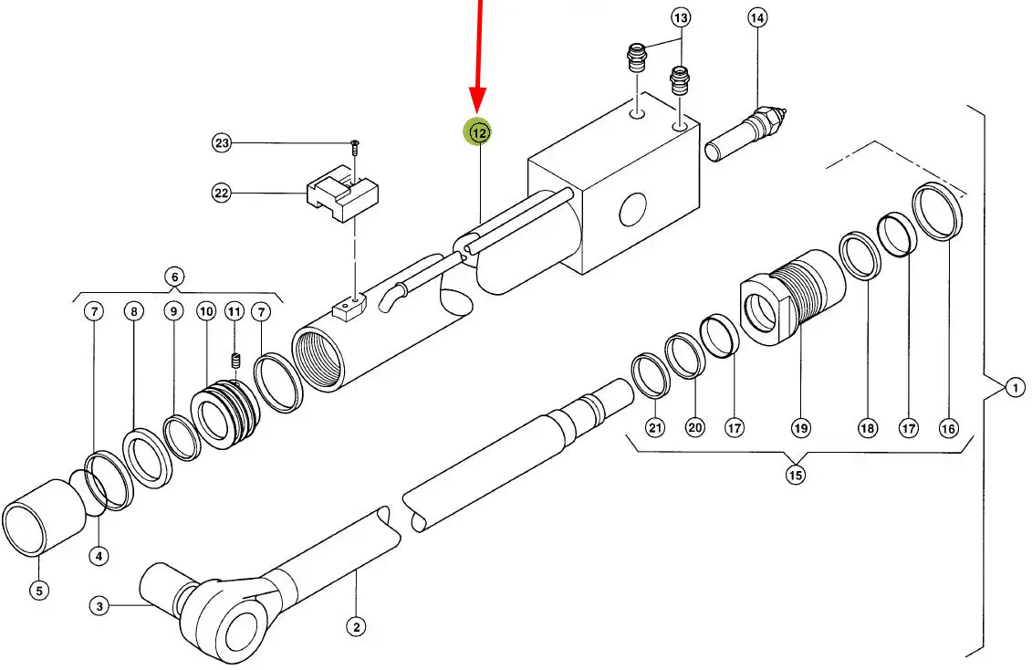 Oryginalna obudowa siłownika hydrulicznego o wymiarach 9 x 6 x 2563 mm i numerze katalogowym 086975.1, stosowana w ładowarkach marki Claas.