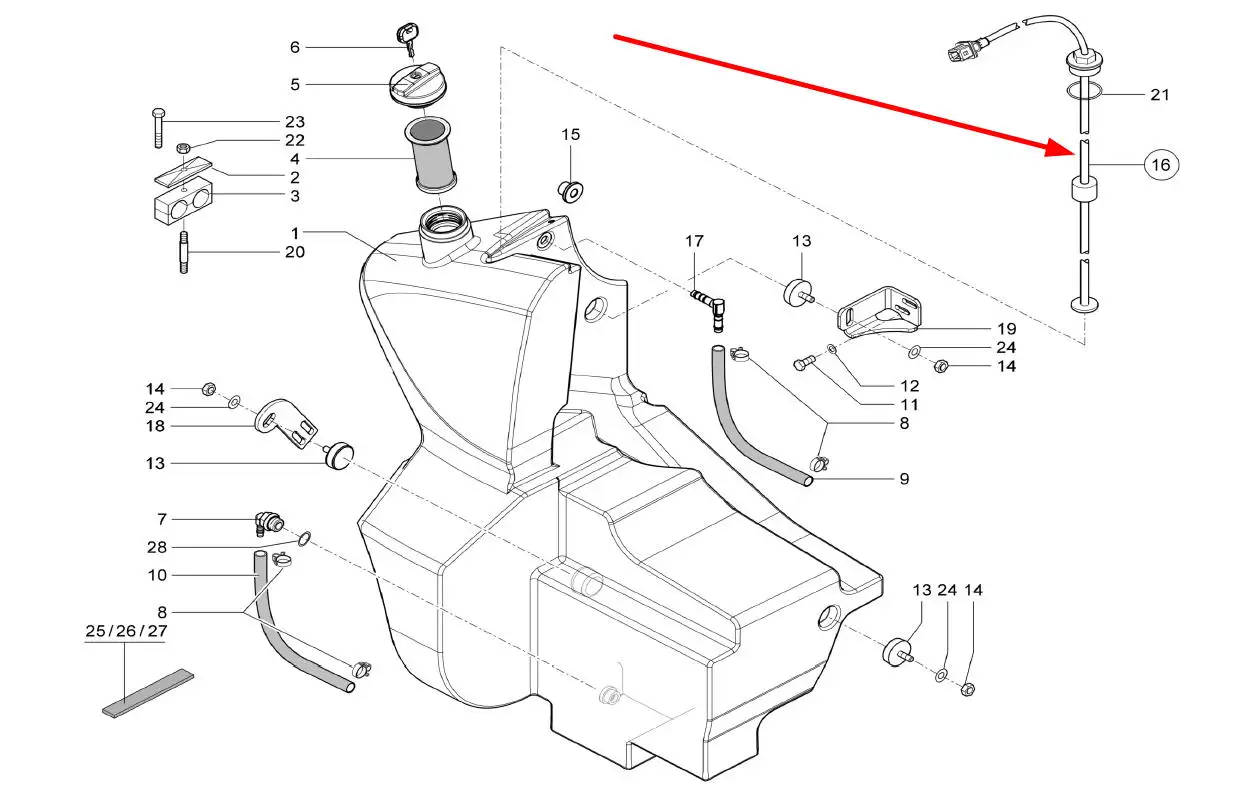 Oryginalny czujnik poziomu paliwa o numerze katalogowym 1000238742, stosowany w ładowarkach marki Kramer.