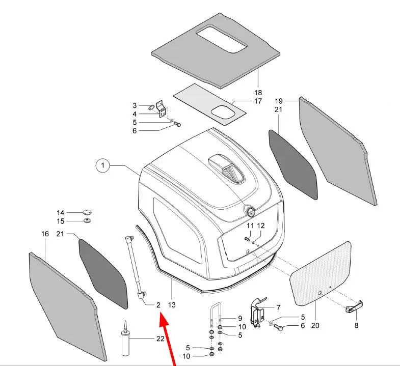 Oryginalny siłownik gazowy osłon silnika o numerze katalogowym 1000260467, stosowany w ładowarkach marki Kramer.