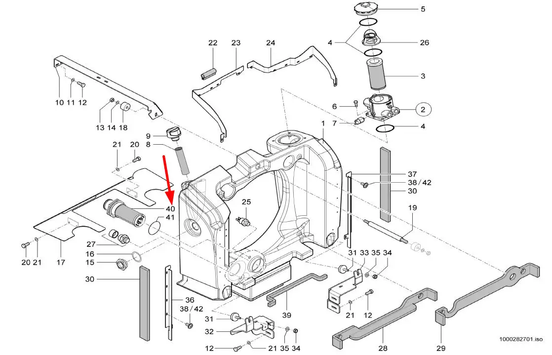 Oryginalny filtr ssawny oleju hydrauliki o numerze katalogowym 1000282257, stosowany w ładowarkach marek Kramer i Wacker Neuson.