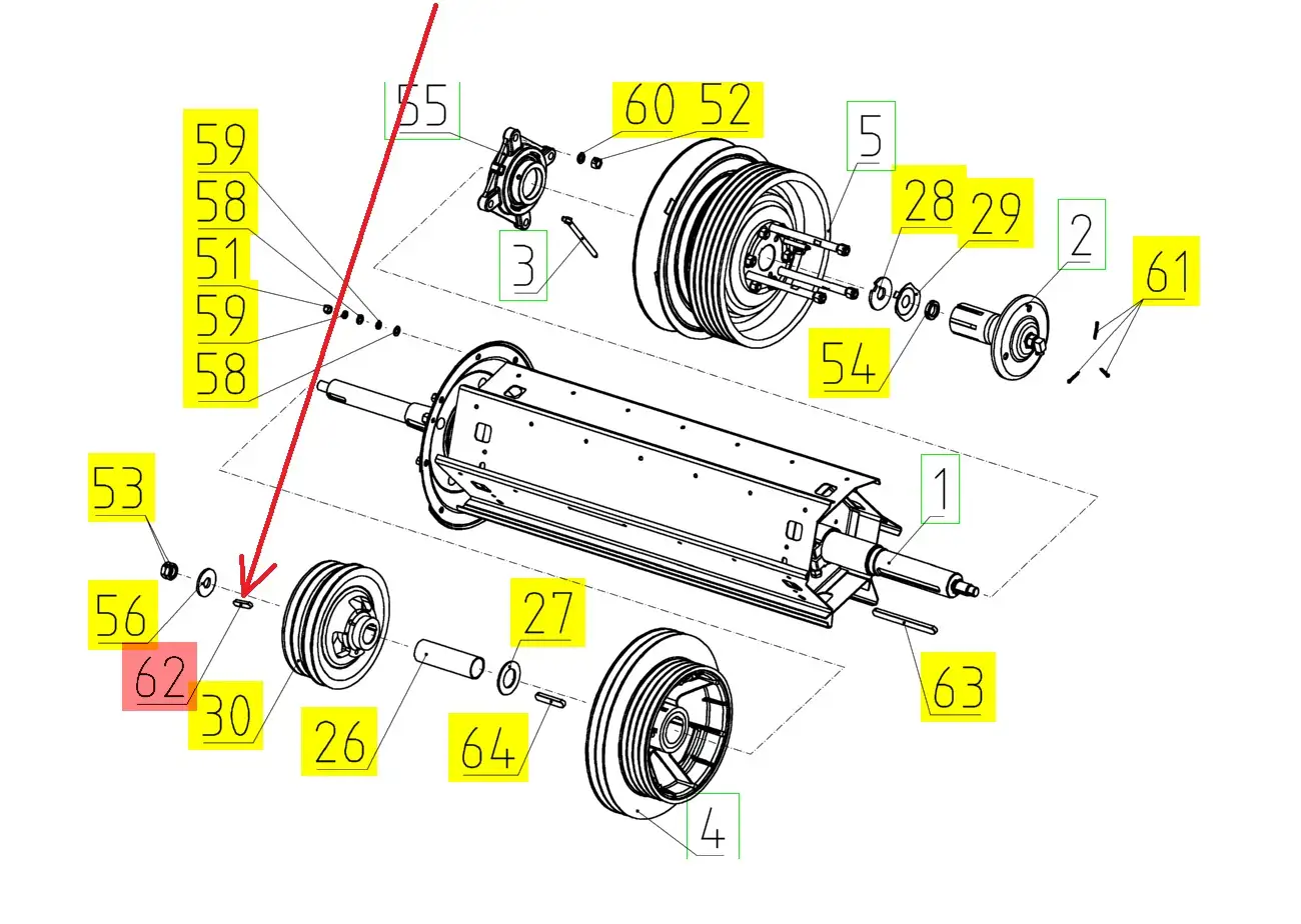 Oryginalny wpust pryzmatyczny koła pasowego odrzutnika słomy o wymiarach 14 x 9 x 56 mm i numerze katalogowym 100153570, stosowany w kombajnach zbożowych marki Rostselmash.