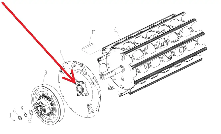 Oryginalne łożysko z obudową napędu bębna młócącego o wymiarach 70 x 150 x 45 i numerze katalogowym 100165658, stosowane w kombajnach zbożowych marki Rostselmash.