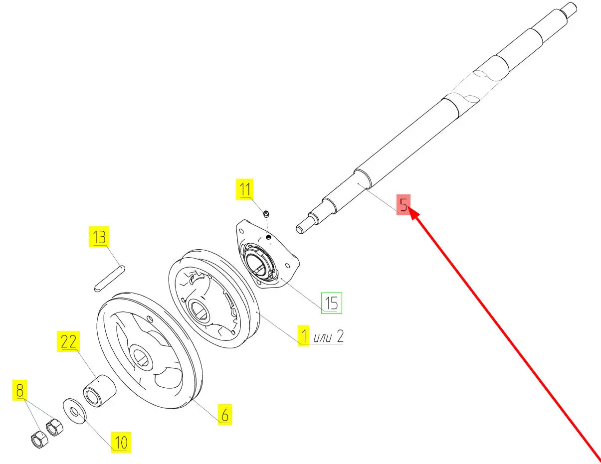 Oryginalny tylny wałek pośredni o numerze katalogowym 100172557, stosowany w kombajnach zbożowych marki Rostselmash.