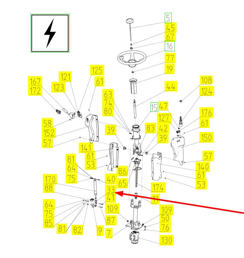 Oryginalne widełki mocowania siłownika regulacji kierownicy o numerze katalogowym 100210646, stosowane w kombajnach zbożowych marki Rostselmash.