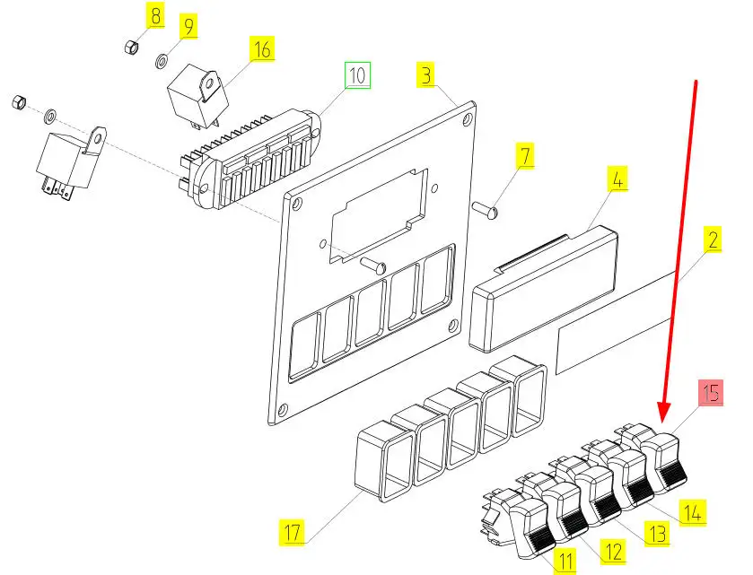 Oryginalny przełącznik o numerze katalogowym 100242909, stosowany w kombajnach zbożowych marki Rostselmash.