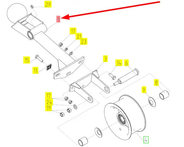 Oryginalne mocowanie koła napinającego o numerze katalogowym 100245275, stosowane w kombajnach zbożowych marki Rostselmash.
