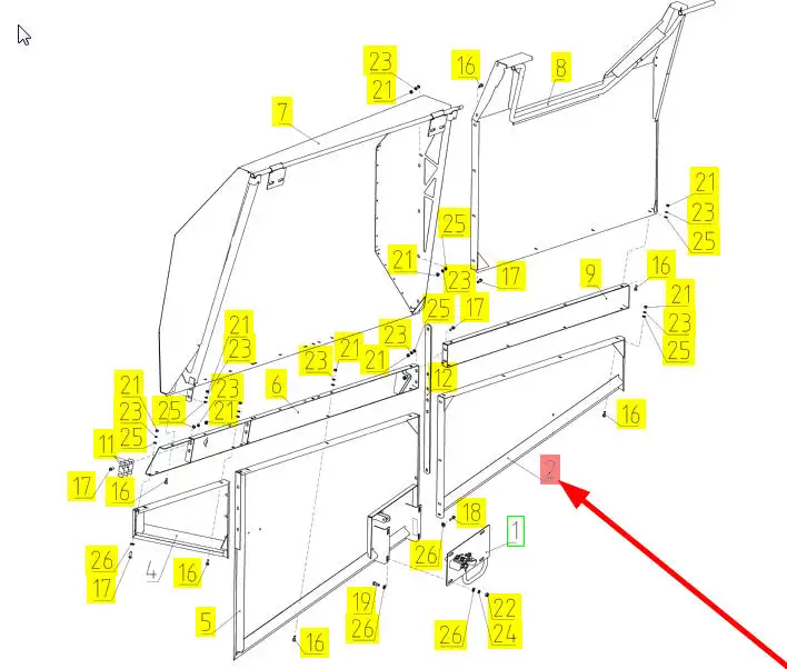 Oryginalny element obudowy prawa strona o numerze katalogowym 100253351, stosowany w kombajnach zbożowych marki Rostselmash.