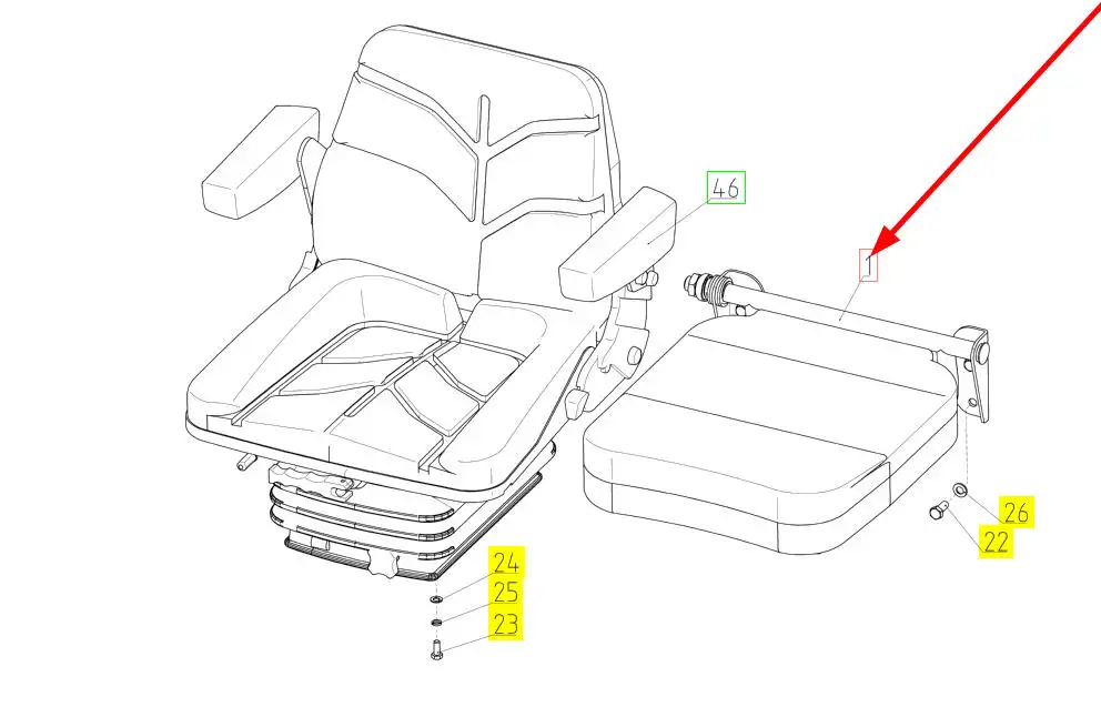 Oryginalne siedzenie pasażera kompletne o numerze katalogowym 100394123, stosowane w kombajnach zbożowych marki Rostselmash.