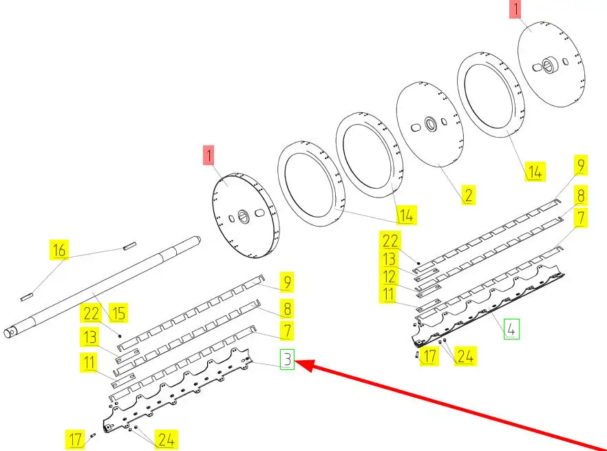 Oryginalna listwa bębna młócącego o numerze katalogowym 100396017, stosowana w kombajnach zbożowych marki Rostselmash.