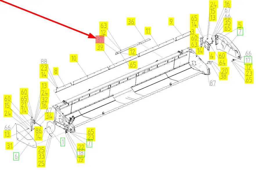 Oryginalna osłona górna hederu o numerze katalogowym 100442044, stosowana w hedrach zbożowych marki Rostselmash.