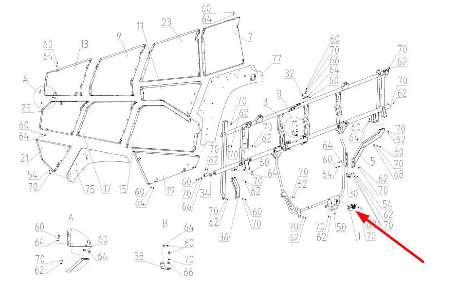 Oryginalny zamek osłon bocznych, stosowany w kombajnach zbożowych marki Rostselmash.