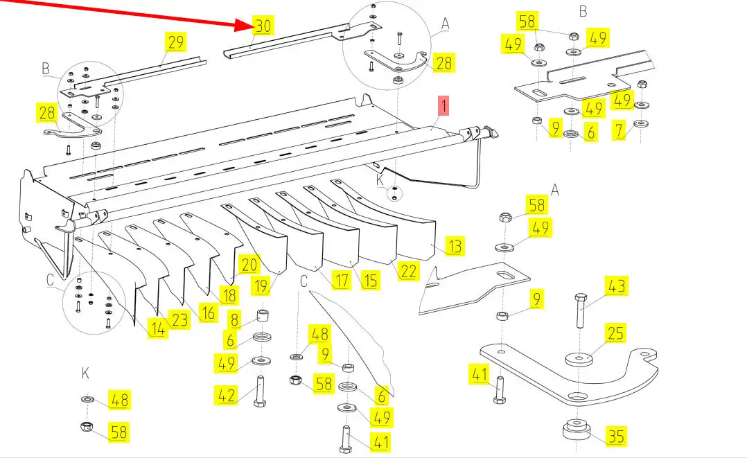 Oryginalna listwa mocująca o numerze katalogowym 100598986, stosowana w kombajnach zbożowych marki Rostselmash.
