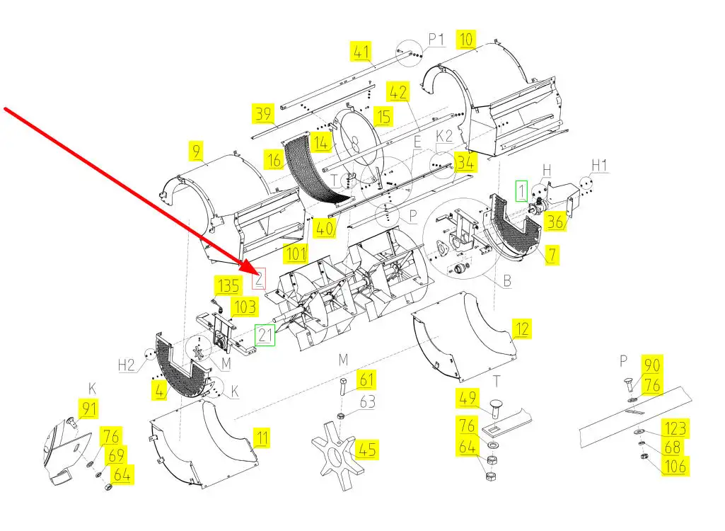 Oryginalny wentylator wialni o numerze katalogowym 100726134, stosowany w kombajnach zbożowych marki Rostselmash.