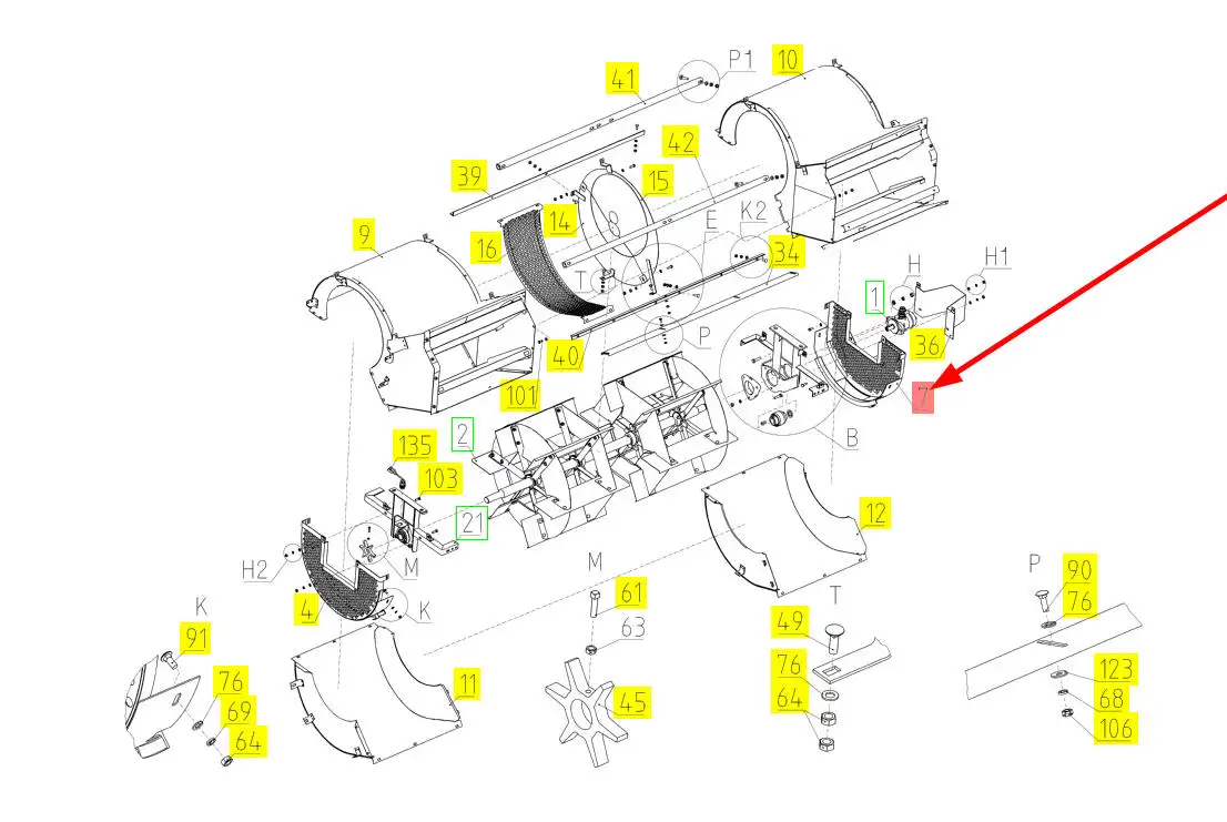 Oryginalny element obudowy wentylatora wialni o numerze katalogowym 100732647, stosowany w kombajnach zbożowych marki Rostselmash.