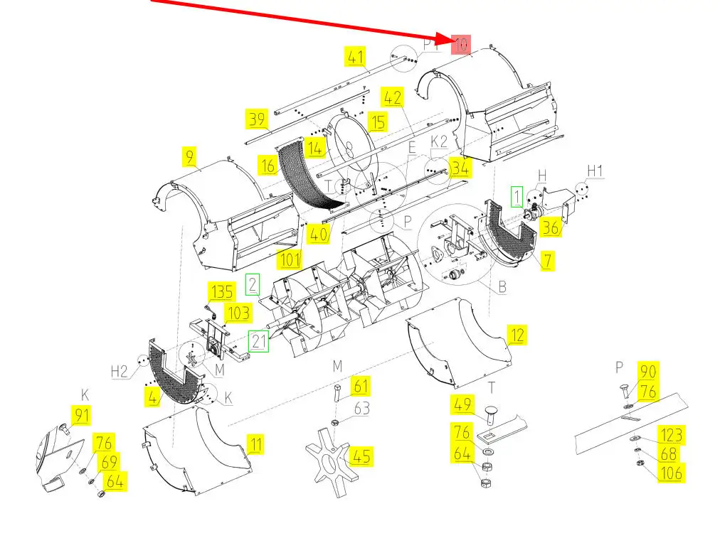 Oryginalny element obudowy wentylatora wialni o numerze katalogowym 100735797, stosowany w kombajnach zbożowych marki Rostselmash.