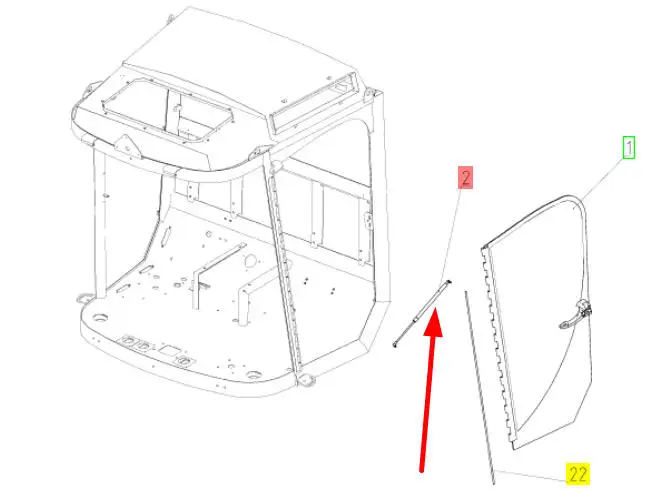 Oryginalny siłownik gazowy drzwi lewych o numerze katalogowym 100829515, stosowany w kombajnach zbożowyc marki Rostselmash.