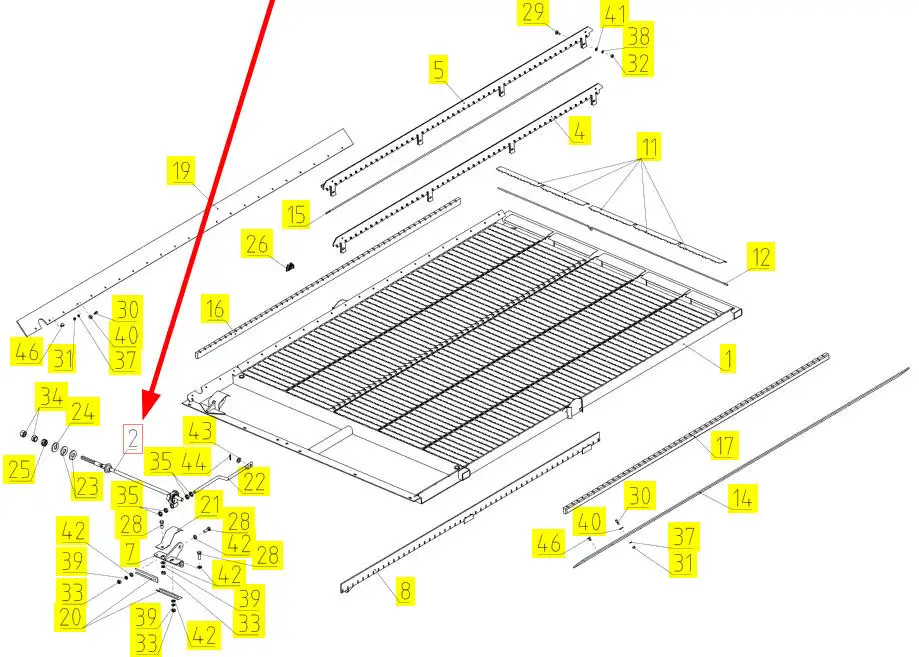 Oryginalny wałek sita o numerze katalogowym 101302111, stosowany w kombajnach zbożowych marki Rostselmash.