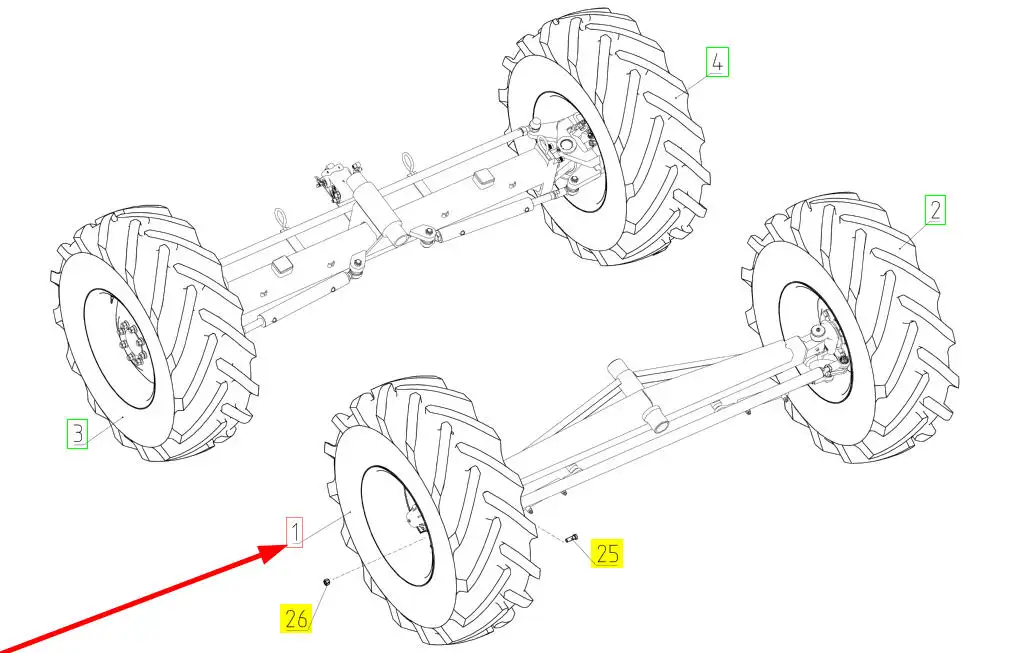 Oryginalne koło tylne o numerze katalogowym 101517249, stosowane w kombajnach zbożowych marki Rostselmash.