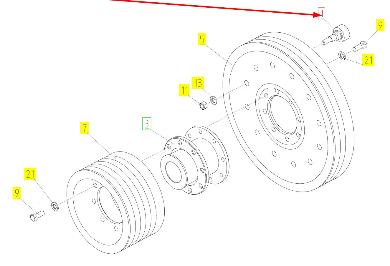 Oryginalny sworzeń koła pasowego o numerze katalogowym 101640422, stosowany w kombajnach zbożowych marki Rostselmash.