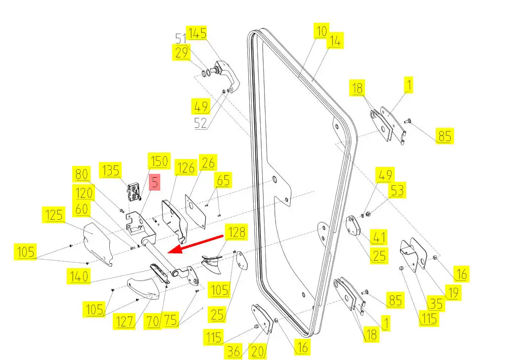 Oryginalny uchwyt drzwi szyby o numerze 101843008, stosowany w kombajnach zbożowych marki Rostselmash.