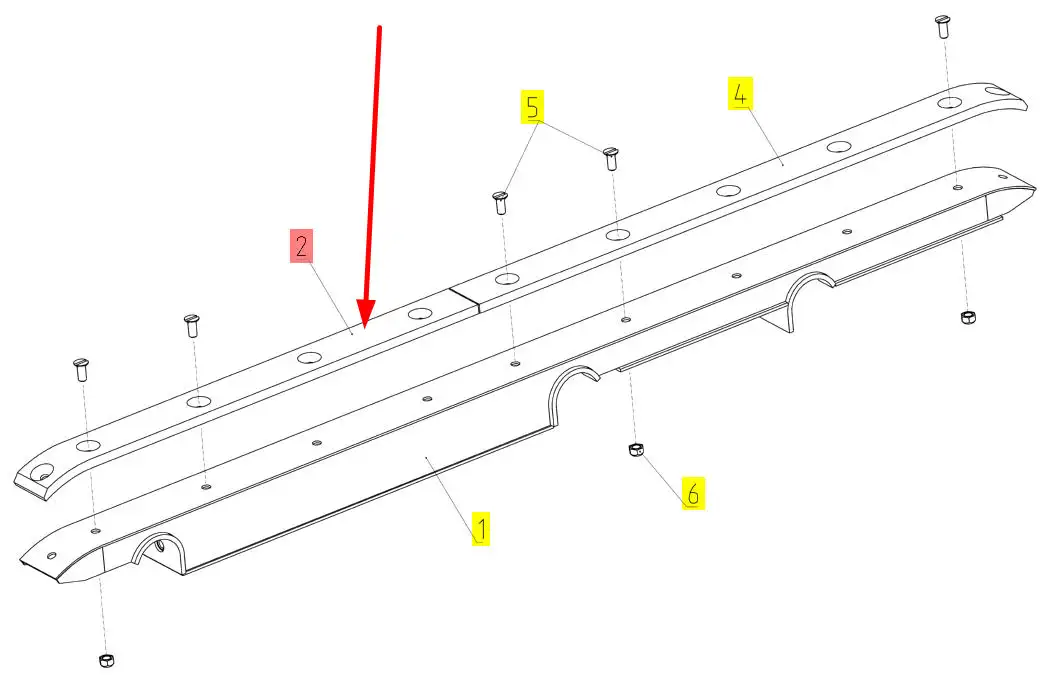 Oryginalna listwa przenośnika pochyłego o numerze katalogowym 101899390, stosowana w kombajnach zbożowych marki Rostselmash.