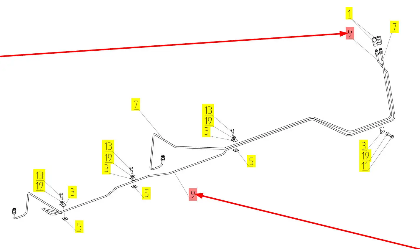 Oryginalny przewód układu hamulcowego o numerze katalogowym 101919471, stosowany w kombajnach zbożowych marki Rostselmash.