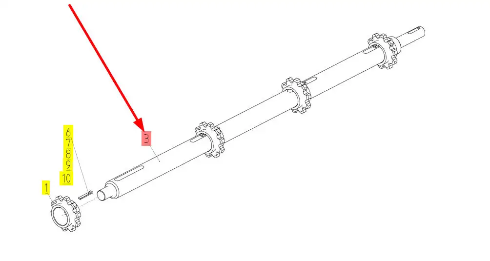 Oryginalny wałek tylni przenośnika pochyłego o numerze katalogowym 101936143, stosowany w kombajnach zbożowych marki Rostselmash.