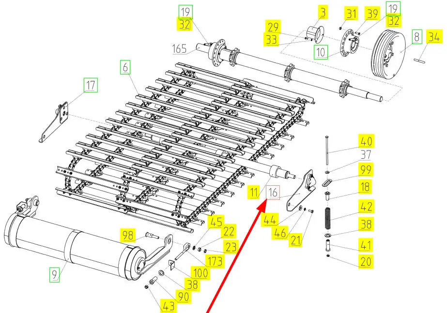 Oryginalna dźwignia wałka przenośnika łańcuchowego o numerze katalogowym 102085192, stosowana w kombajnach zbożowych marki Rostselmash.