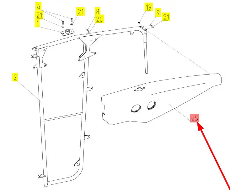 Oryginalna osłona wspornika lusterka zewnętrznego o numerze katalogowym 102090383, stosowana w kombajnach zbożowych marki Rostselmash.